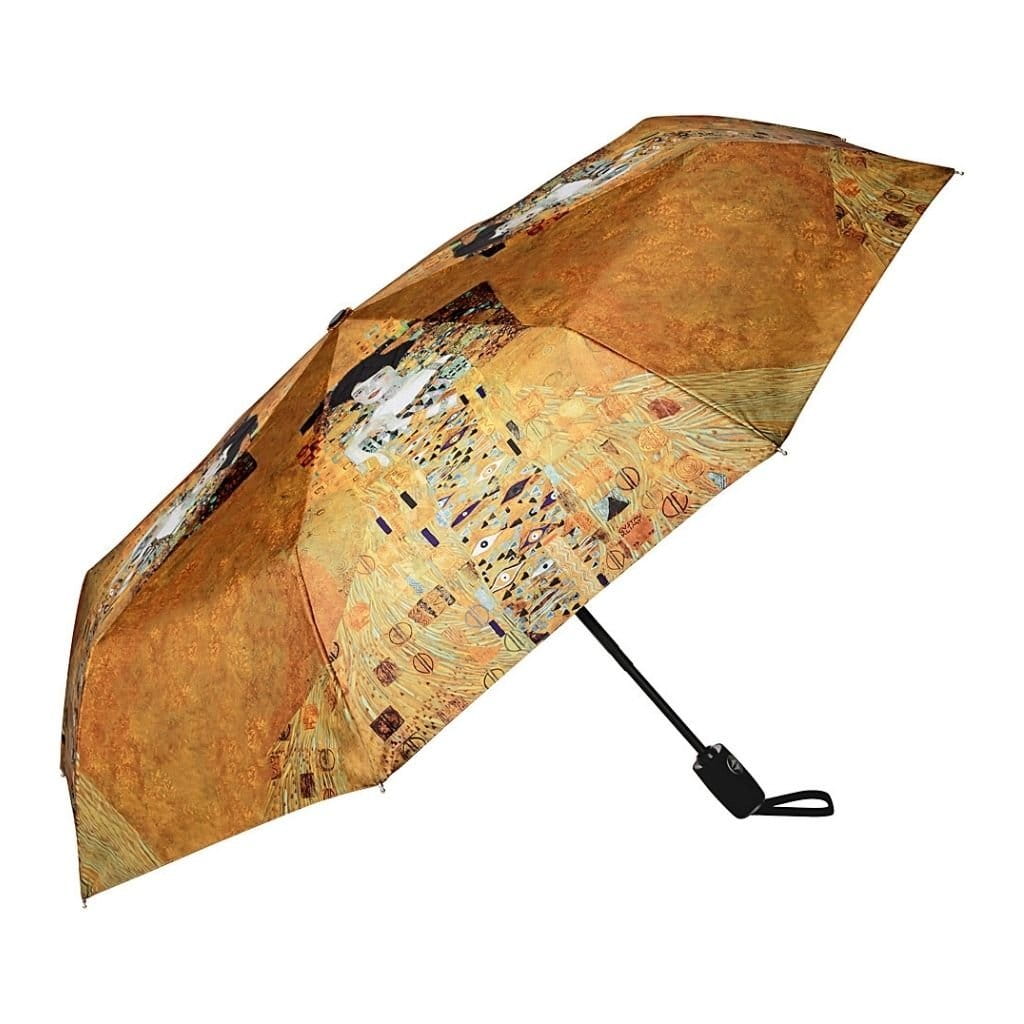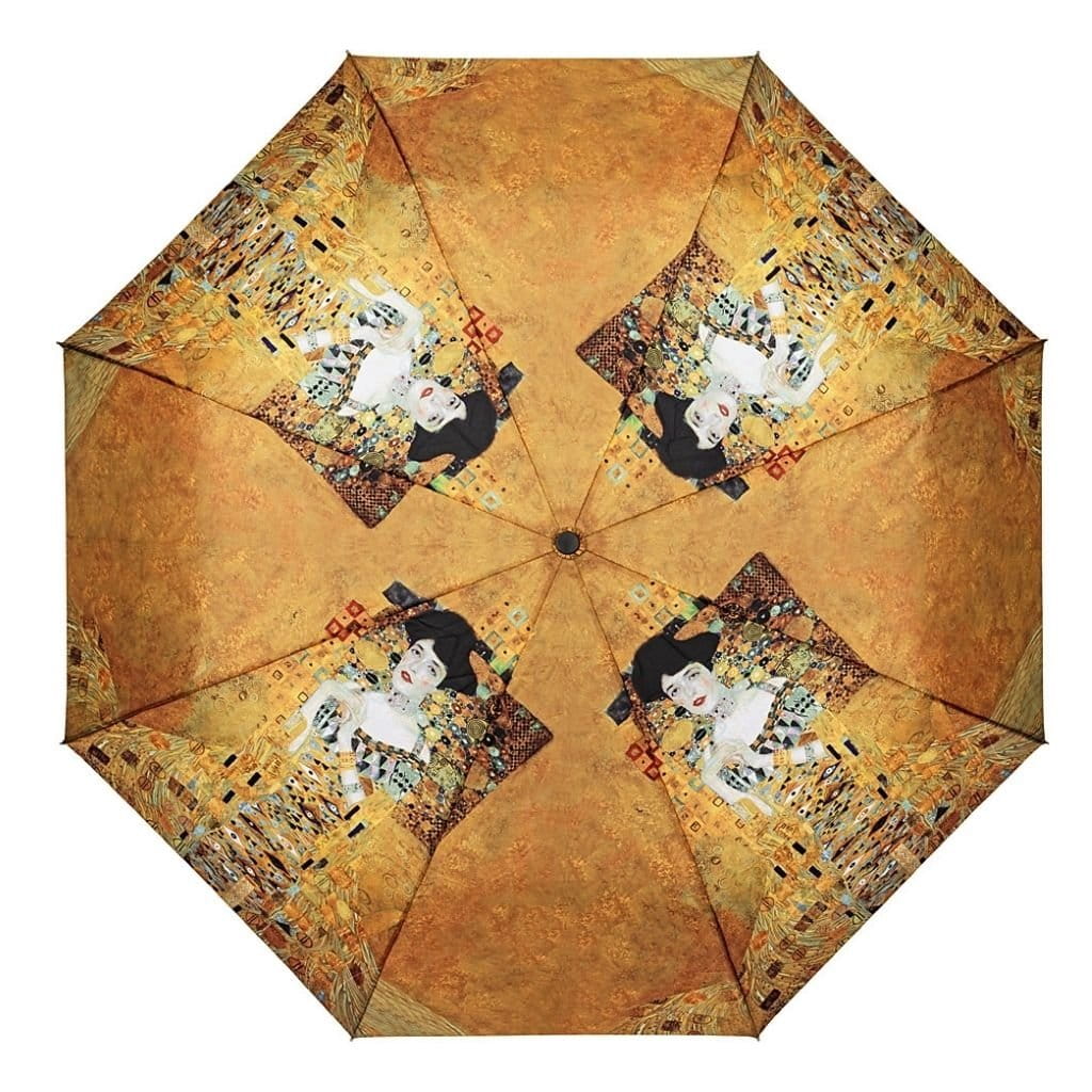 Elegancka parasolka inspirowana słynnym portretem „Złotej Damy” autorstwa Gustava Klimta. Łączy luksusowy, artystyczny design ze świetną jakością wykonania. Lekka, wygodna i odporna na wiatr — idealna do torebki. Doskonały wybór dla miłośników sztuki i stylowych dodatków.