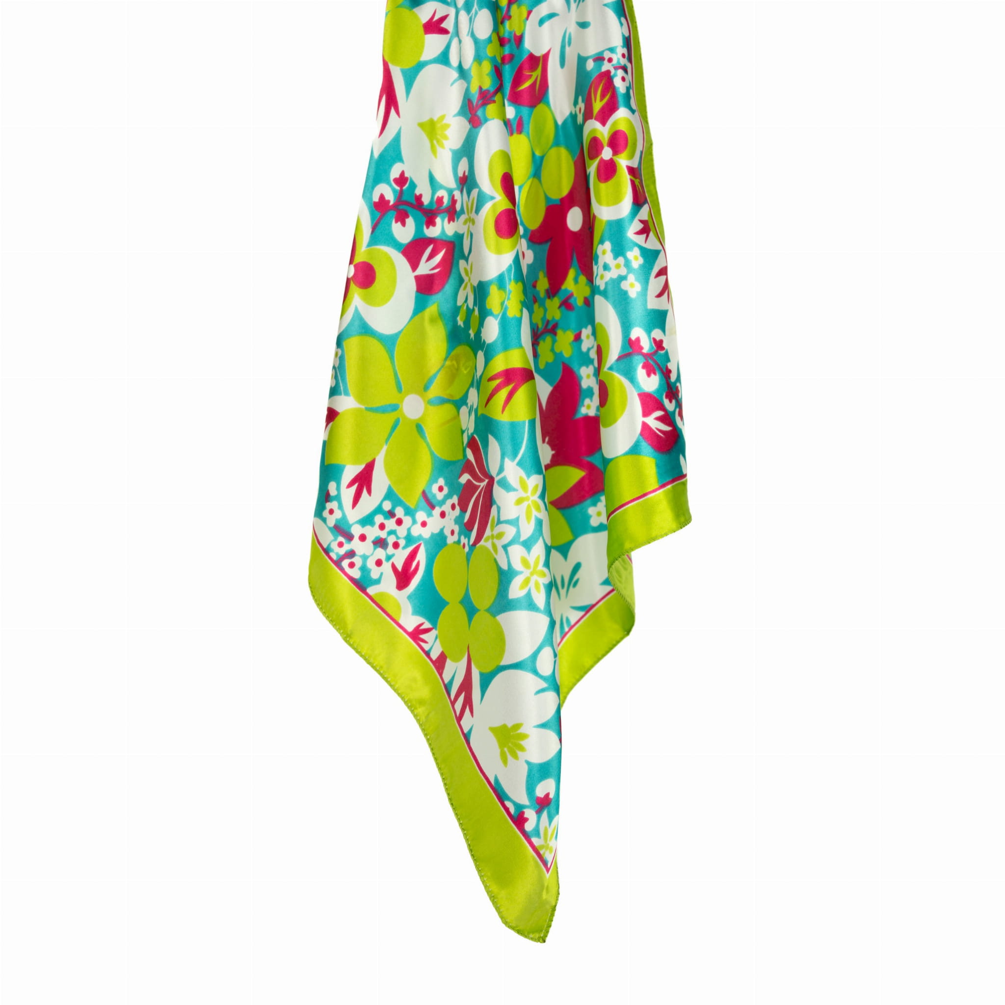 Kolorowa apaszka / gawroszka z satynowym połyskiem. Uniwersalny dodatek urozmaicający i ożywiający stylizację.