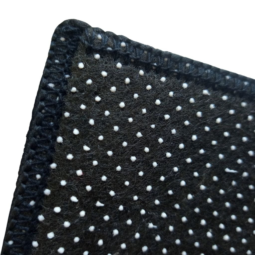 Dywanik posiada obszywany brzeg i antypoślizgowe kropki pod spodem.