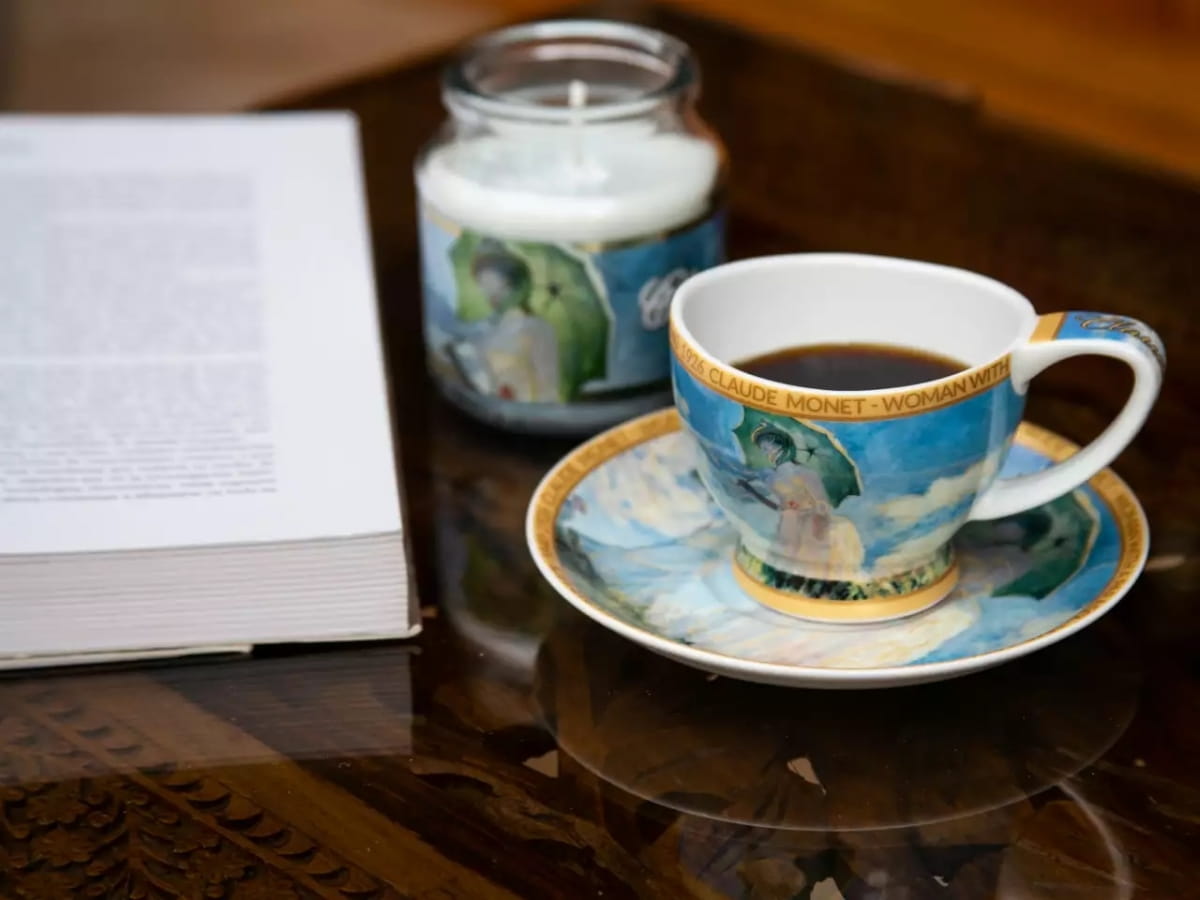 Malarski motyw na filiżance dodaje jej uroku i powoduje, że picie kawy z tak pięknie zdobionego naczynka zyska dodatkowy artystyczny walor.
