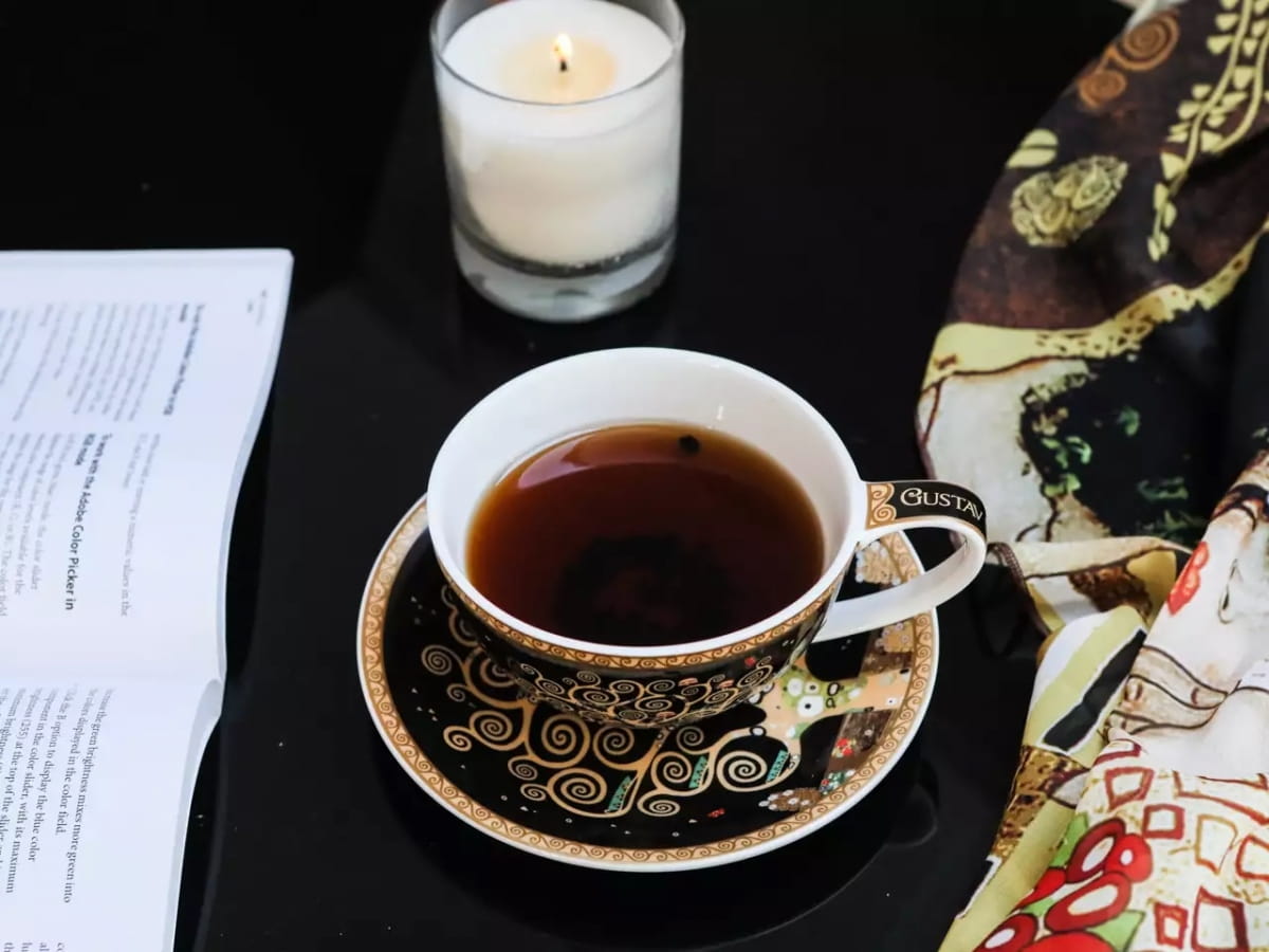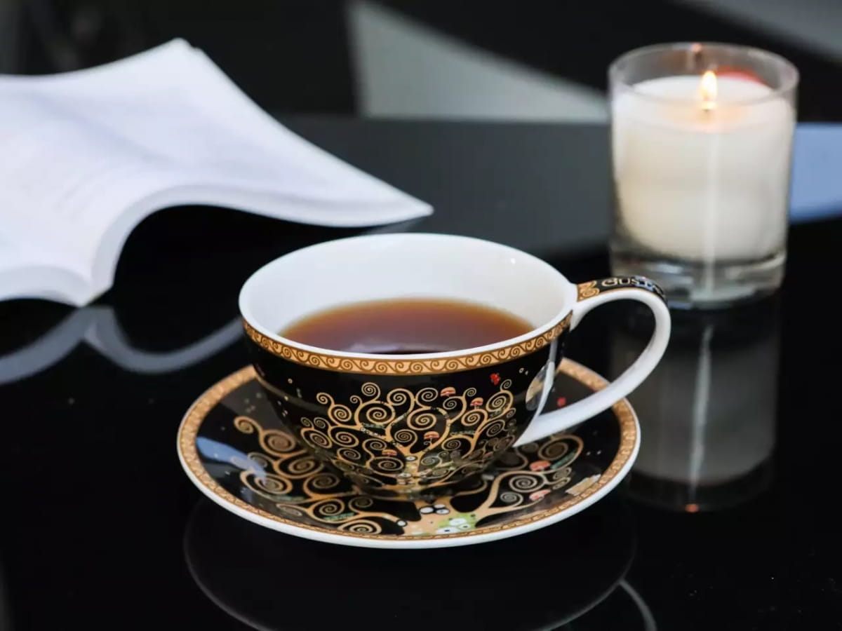 Elegancka porcelanowa filiżanka zdobiona motywem zaczerpniętym z twórczości Gustava Klimta Drzewo życia