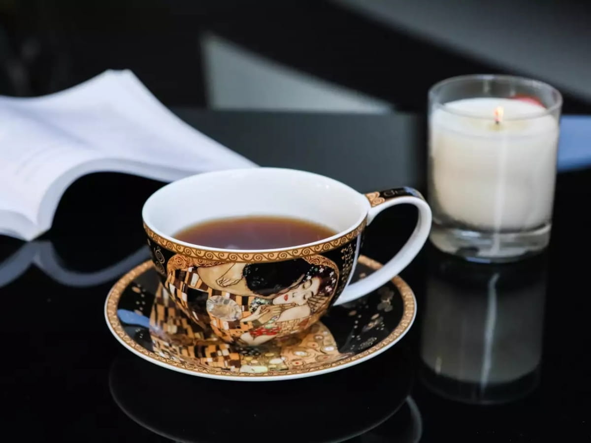 Filiżanka Pocałunek z czarnym tłem to połączenie klasyki i nowoczesnej elegancji. Idealna dla osób, które cenią sztukę, piękno i wyjątkowe przedmioty codziennego użytku. Wnosi do wnętrza aurę luksusu i pozwala cieszyć się chwilą – jak w galerii sztuki, ale we własnym domu.