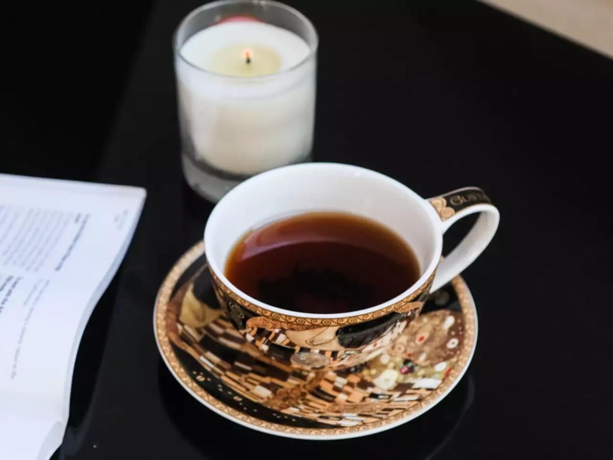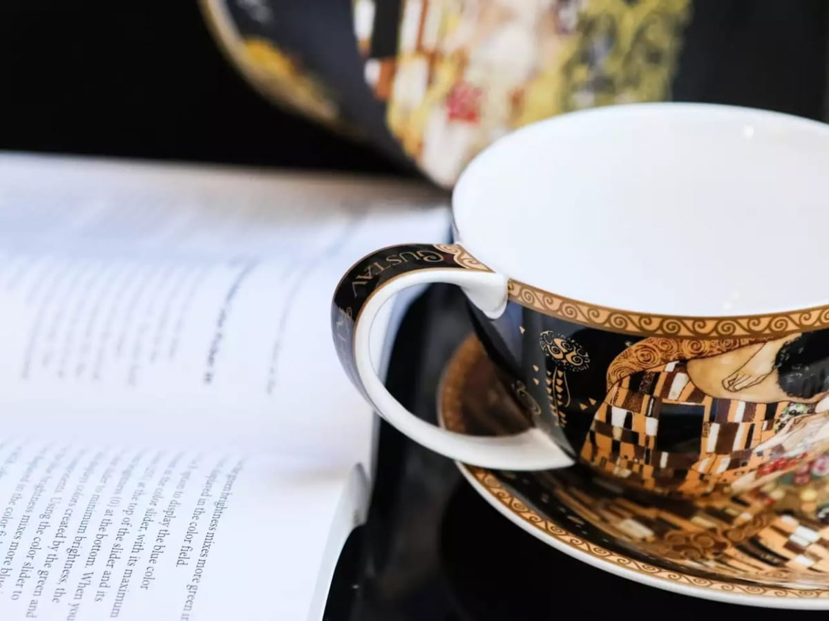 Elegancka porcelanowa filiżanka zdobiona motywem z obrazu Gustava Klimta "Pocałunek"