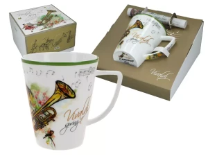 Kubek porcelanowy z pięknym motywem inspirowanym muzyką Antonio Vivaldiego. Prezent dla melomana i miłośnika eleganckich akcentów w domu.
