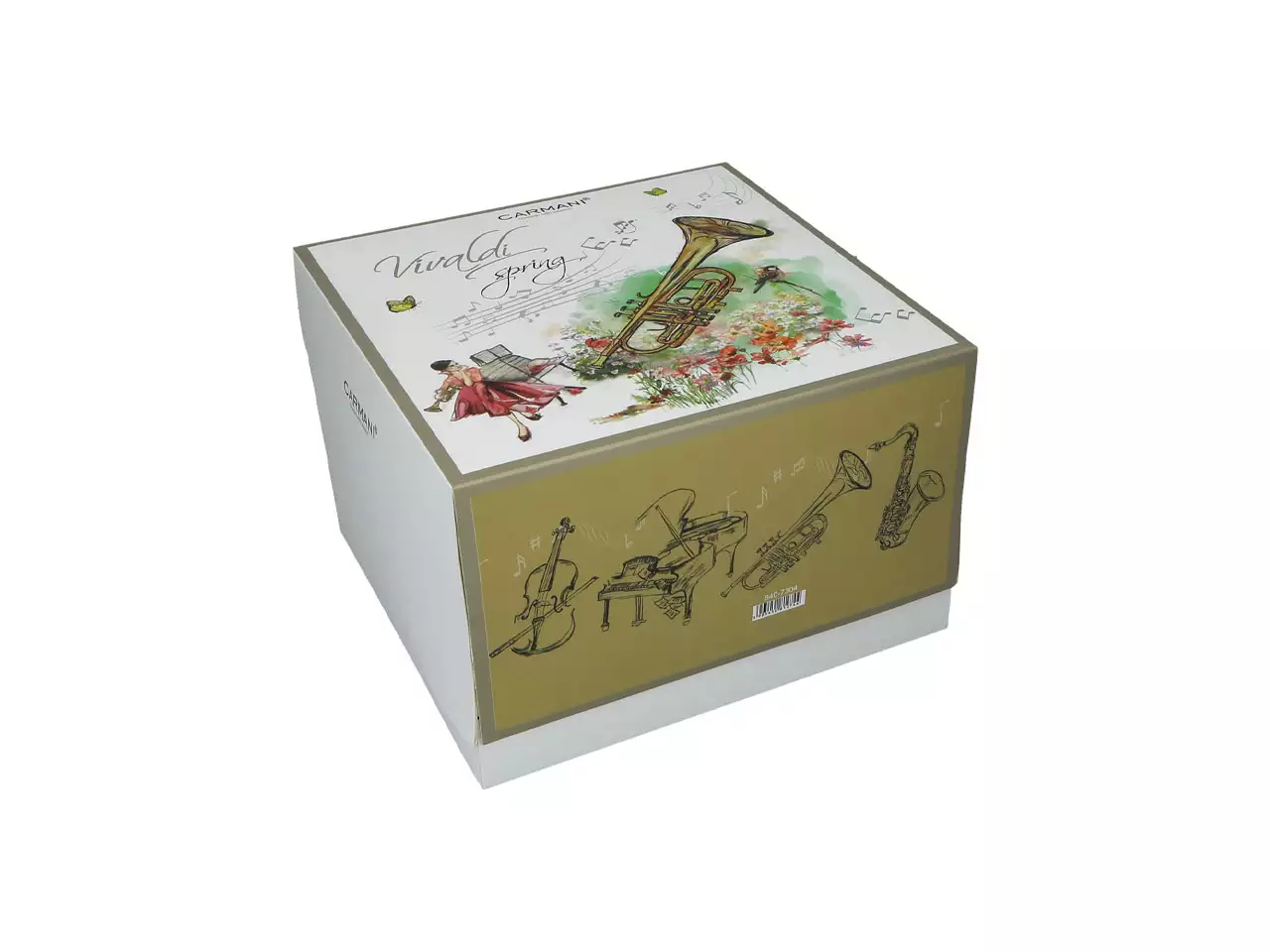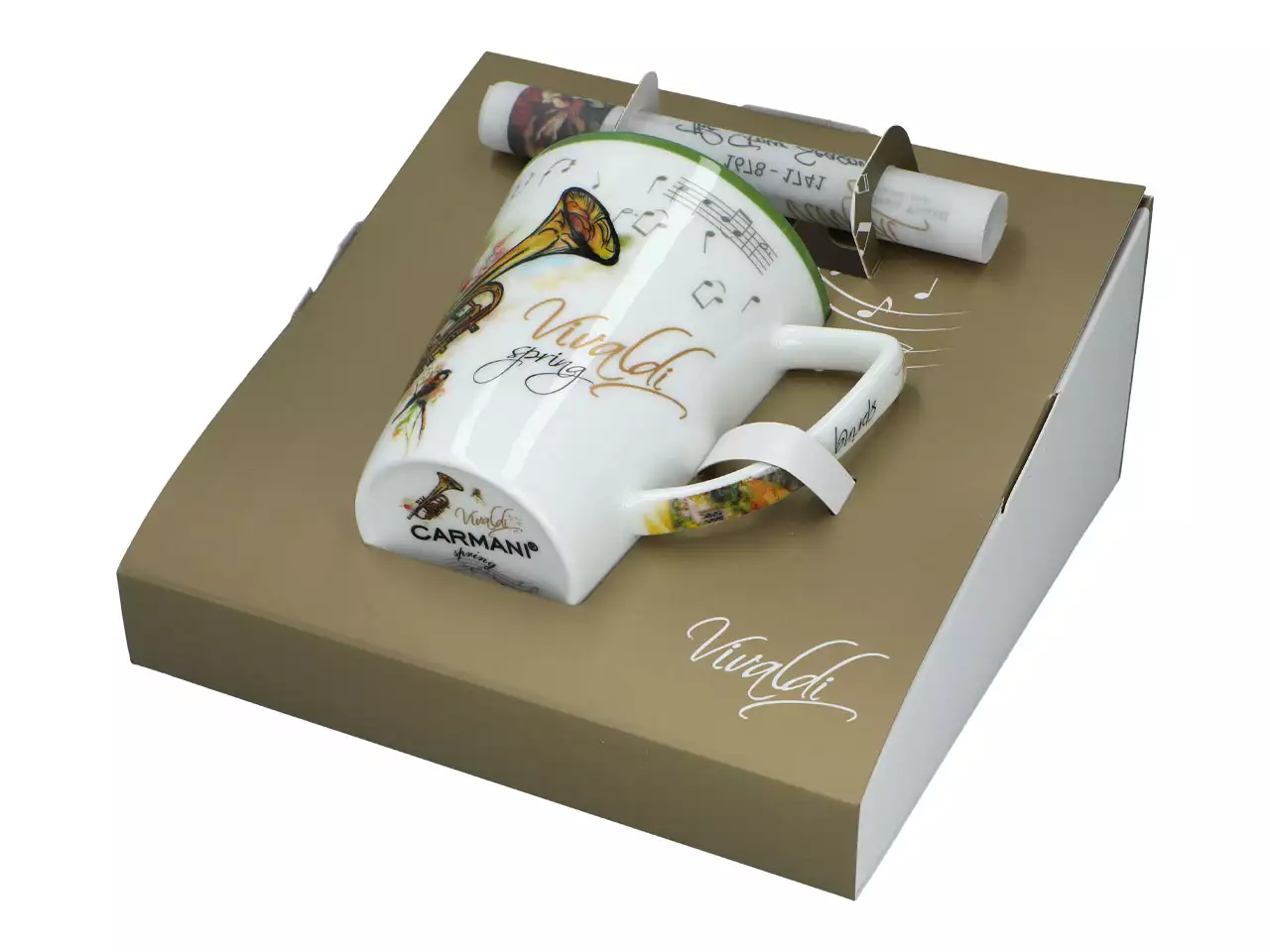 Kubek zapakowany jest w pudełko o dość oryginalnym kształcie. Znajduje się w nim również ciekawy dodatek w postaci zwiniętego w rulon pergaminu z zapisem nutowym dzieła Vivaldiego.