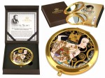 Eleganckie zamykane lusterko do torebki zdobione motywem malarskim zaczerpniętym z twórczości Gustava Klimta. Piękny prezent dla eleganckiej kobiety.