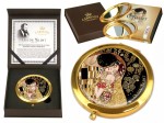 Małe eleganckie lusterko zdobione znanym motywem malarskim "Pocałunek" Gustava Klimta. Piękny prezent zapakowany w gustowne pudełeczko.