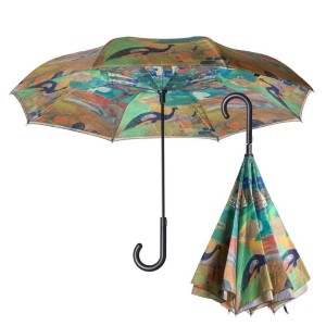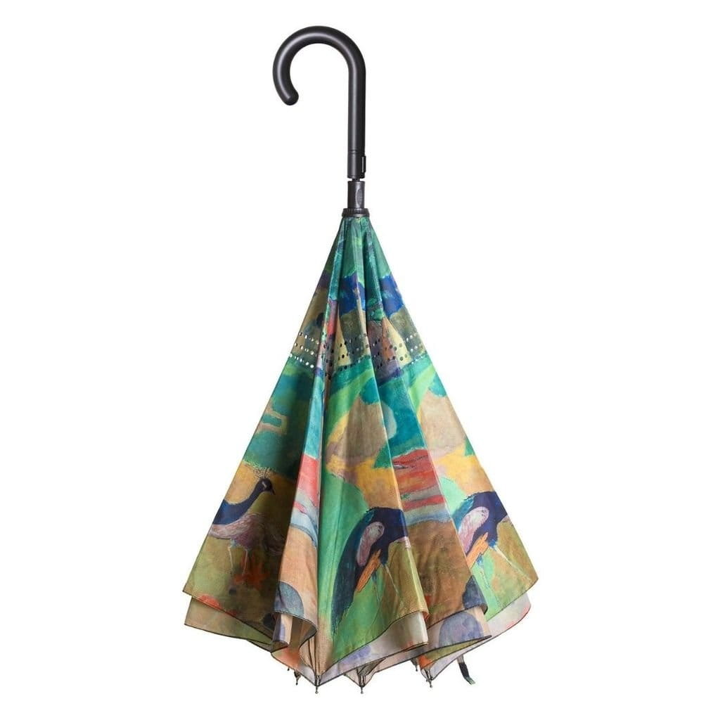 Parasol długi odwrotny automatycznie składany do środka. Piękna reprodukcja obrazu Paula Gauguin "Krajobraz z pawiami"