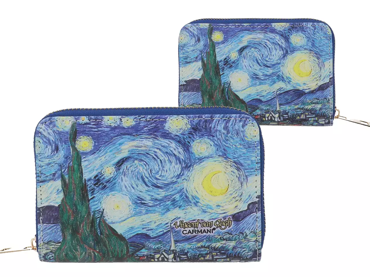 Elegancki portfel zapinany na zamek, z wieloma przegródkami wewnątrz. Zdobiony dziełem Vincenta van Gogha i zapakowany w pudełko prezentowe idealnie nadaje się na upominek.