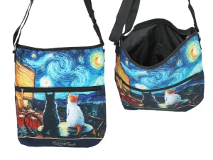 Torba na ramię typu listonoszka z motywem kotów inspirowanym twórczością Vincenta van Gogha