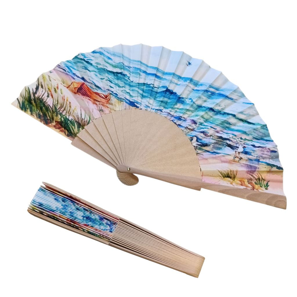 Wachlarz drewniany – Łódka na brzegu morza